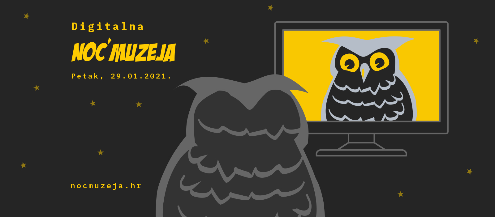 Suočeni s teškim okolnostima u uvjetima globalne krize izazvane pandemijom Covid-19, a s druge strane motivirani pozitivnim, suvremenim i nužnim trendovima kreiranja i prezentiranja muzejskih sadržaja na različitim digitalnim medijima, ovogodišnja 16. NOĆ MUZEJA diljem Hrvatske bit će pomalo neuobičajena i održat će se najvećim dijelom kao DIGITALNA NOĆ MUZEJA.